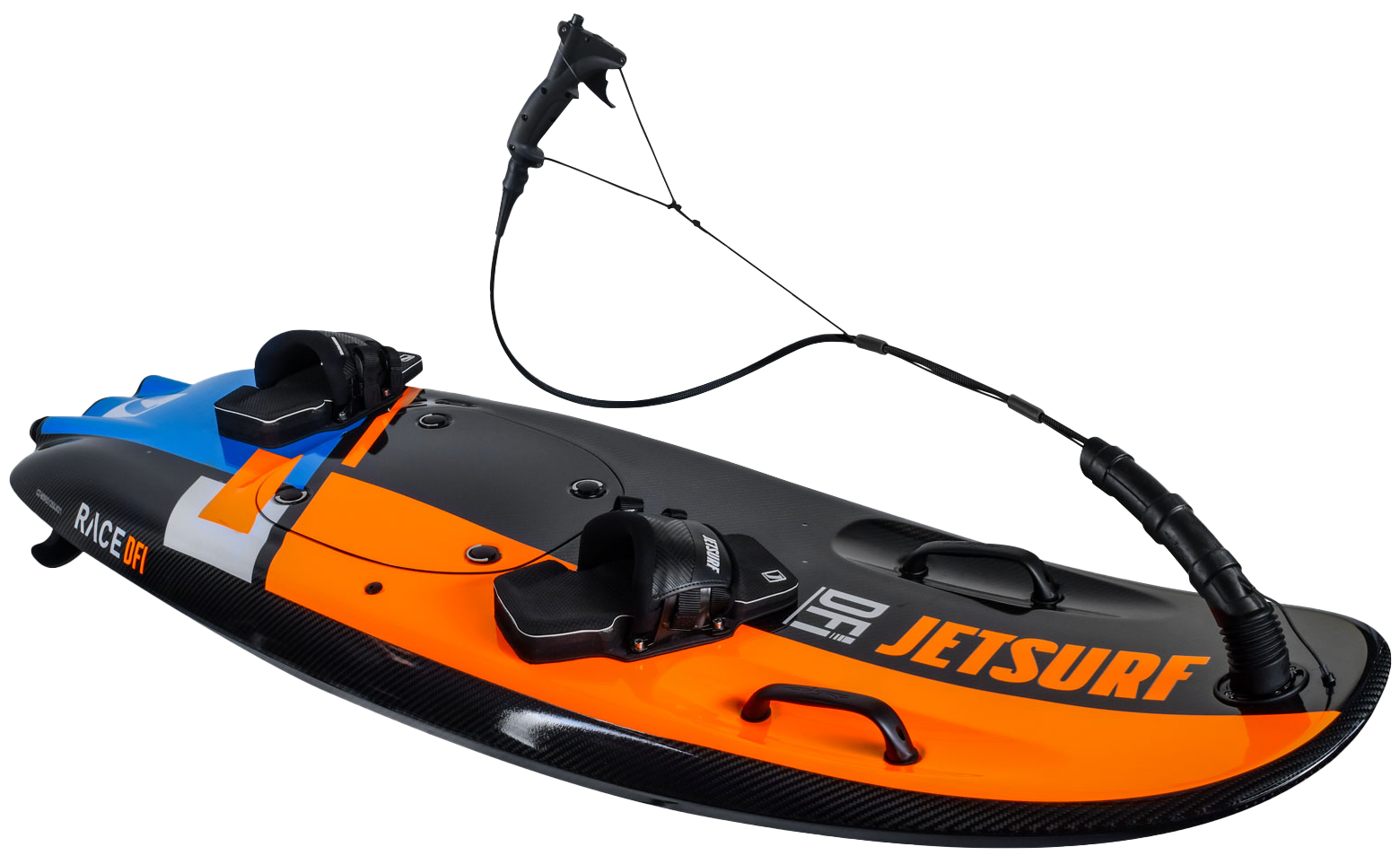 The JetSurf Race DFI’s hull shape is designed to improve maneuverability in fast corners so riders can enjoy the sporty riding style of the jetsurf. The new DFi 100 CC two-stroke motor provides even more power and economy.