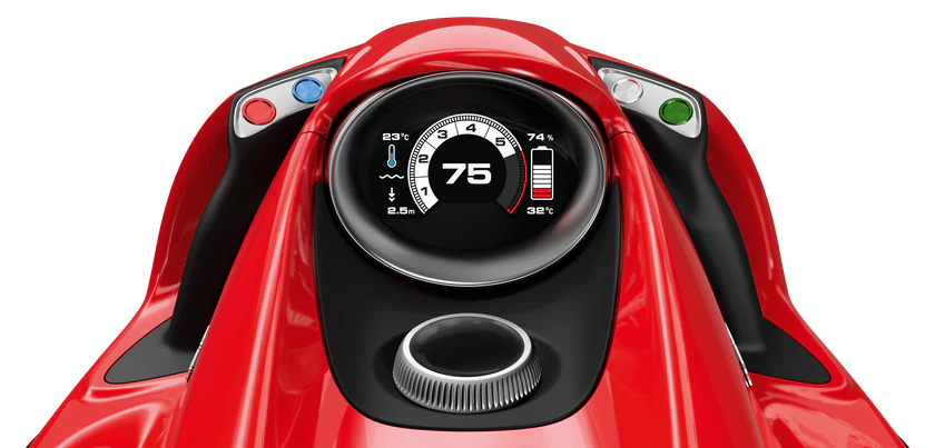 The SEABOB F5 S is an absolute high-performance vehicle. With a total weight of only 34 kg, it has extremely good handling properties outside of the water. With 680 Newtons, the SEABOB F5 S brings powerful thrust into the water. The E-Jet Power System is switched in 6 power gears. With these, the SEABOB F5 S can be driven in a relaxed manner at low power or in 6th gear at a demanding high speed.
