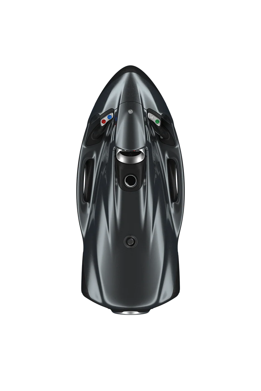 The watercraft has a very sporty character and is characterized by exceptional dynamics. Its sporty appearance is underlined by elements in a matt chrome design. The SEABOB F5 S is at home in the sea and due to its high maneuverability it is also ideally suited for use in larger pool areas. Without front selfie camera.